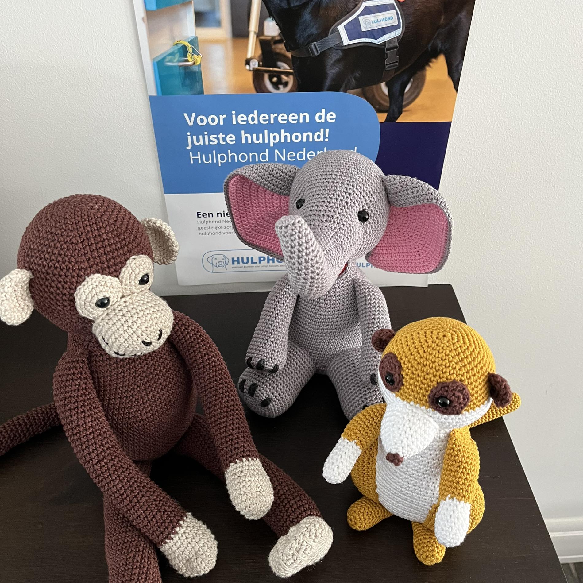 Marie-Louise Melis haakt voor stichting Hulphond NL. Alle opbrengsten gaan naar Hulphond NL