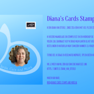 Uiteraard heb ik een leuk kaartje bedacht dat je bij mij aan de kraam kunt komen maken. Dat kan doorlopend en je hoeft je er niet voor op te geven! Als er een plaatsje is dan ben je van harte welkom om aan te schuiven! Als je dit kaartje komt maken leer ik je daarbij een leuk stempel-techniekje.